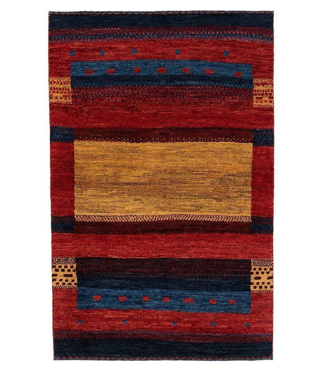 This one-of-a-kind Persian gabbeh was hand knotted using 100% Persian wool and measures 3' 0" x 4' 7"