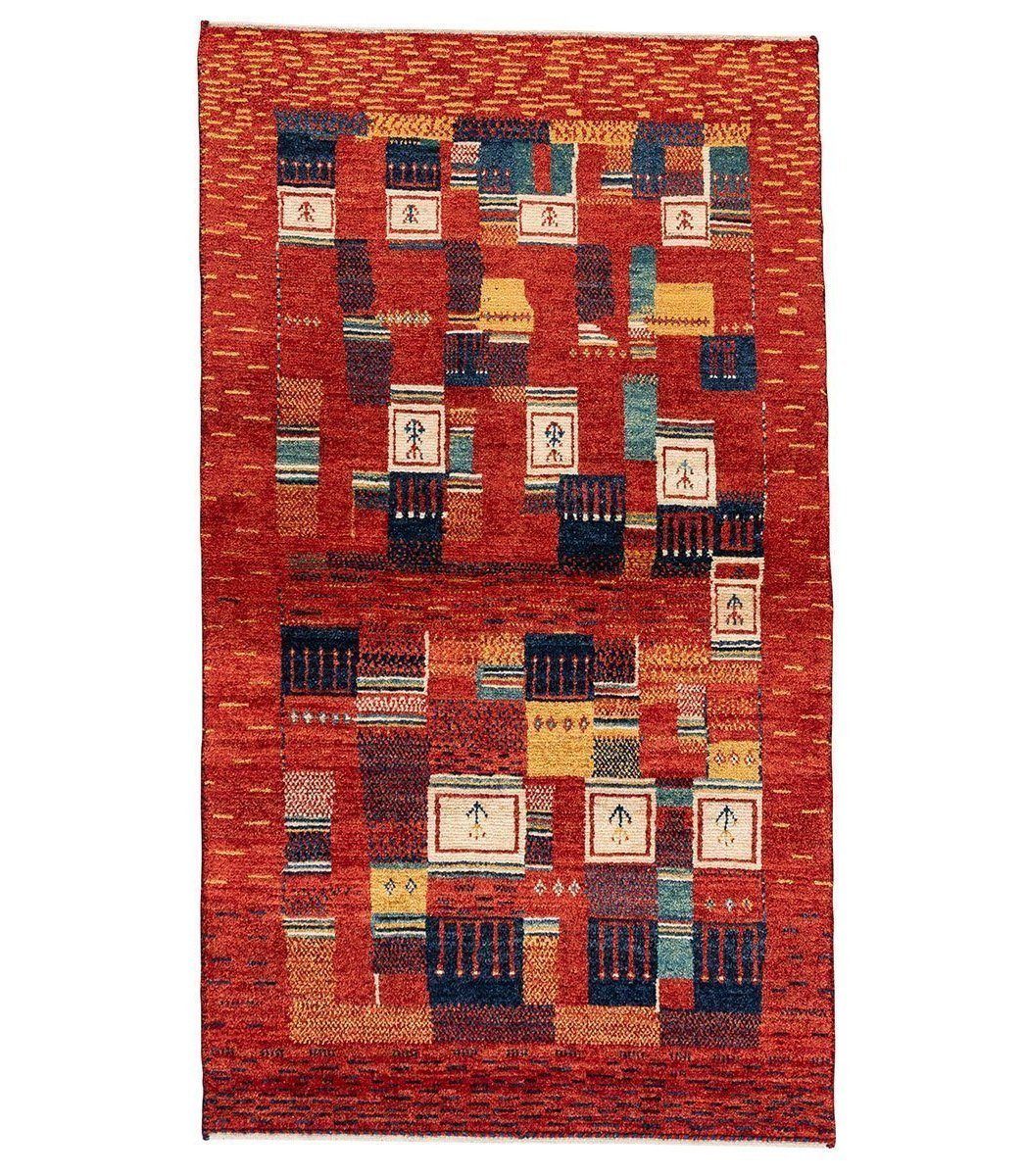 This one-of-a-kind Persian gabbeh was hand knotted using 100% Persian wool and measures 2' 11" x 5' 3".