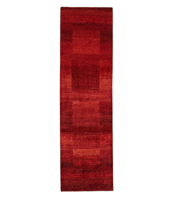 This Persian gabbeh runner was hand-knotted using 100% Persian wool. It measures 2' 9" x 9' 8".