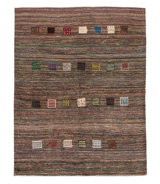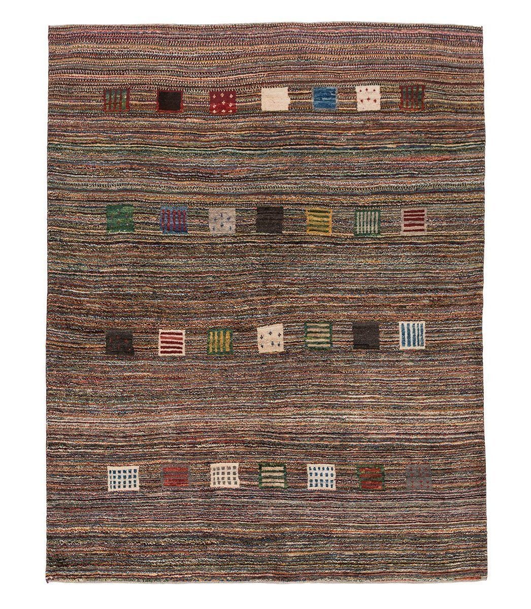 This gabbeh was hand knotted of 100% Persian wool. The multi-color shades were achieved through vegetable dyes, in the traditional style of these carpets. This rug is a one of a kind and only available as a 5'7" X 7'1".
