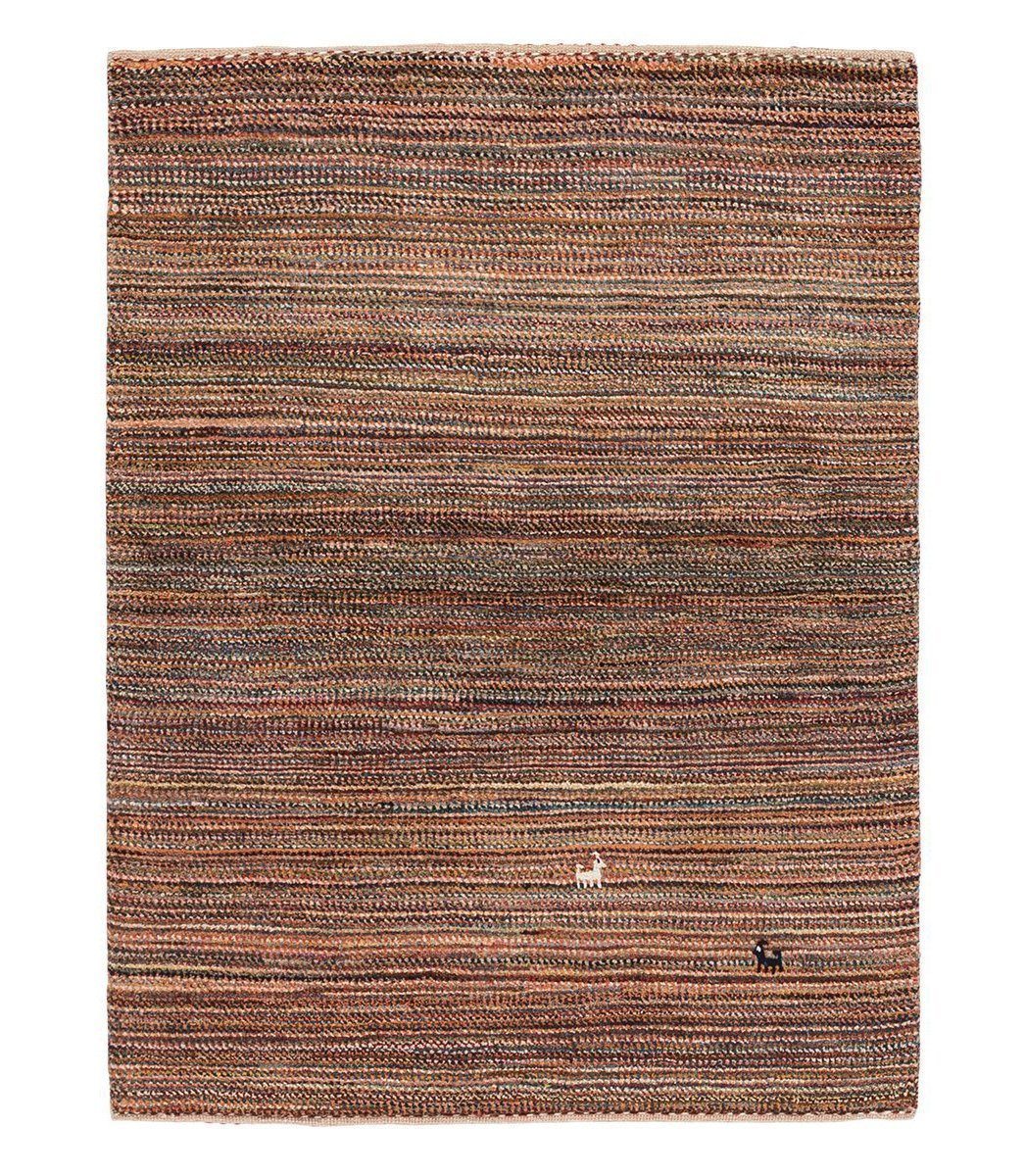 This gabbeh was hand knotted of 100% Persian wool. The multi-color shades were achieved through vegetable dyes, in the traditional style of these carpets. This rug is a one of a kind and only available as a 3'3"X 4'3".