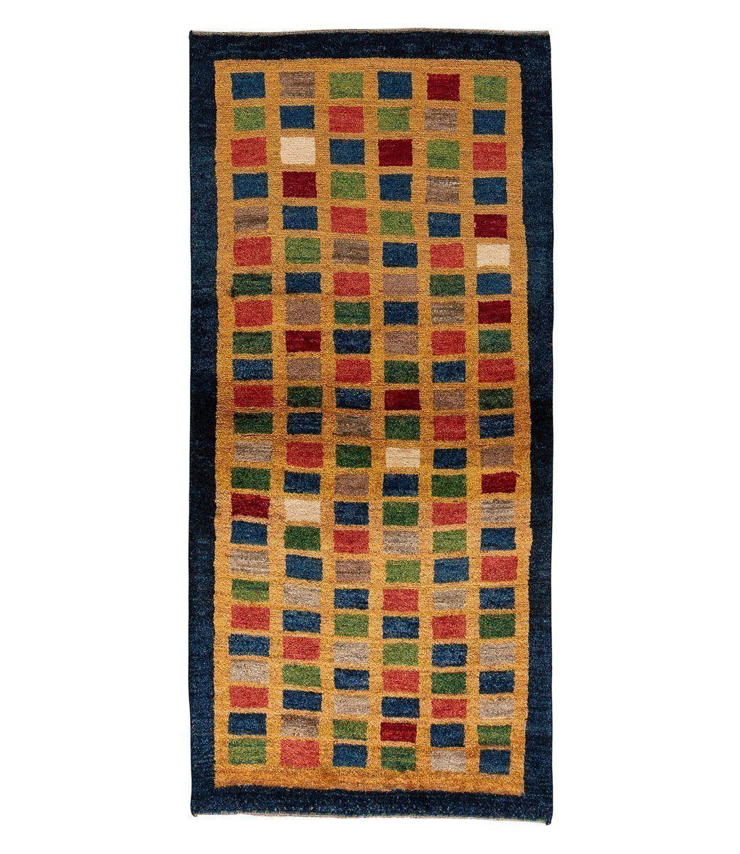 This one of a kind gabbeh was hand knotted using 100% Persian wool and measures 2' 7" x 5' 7".