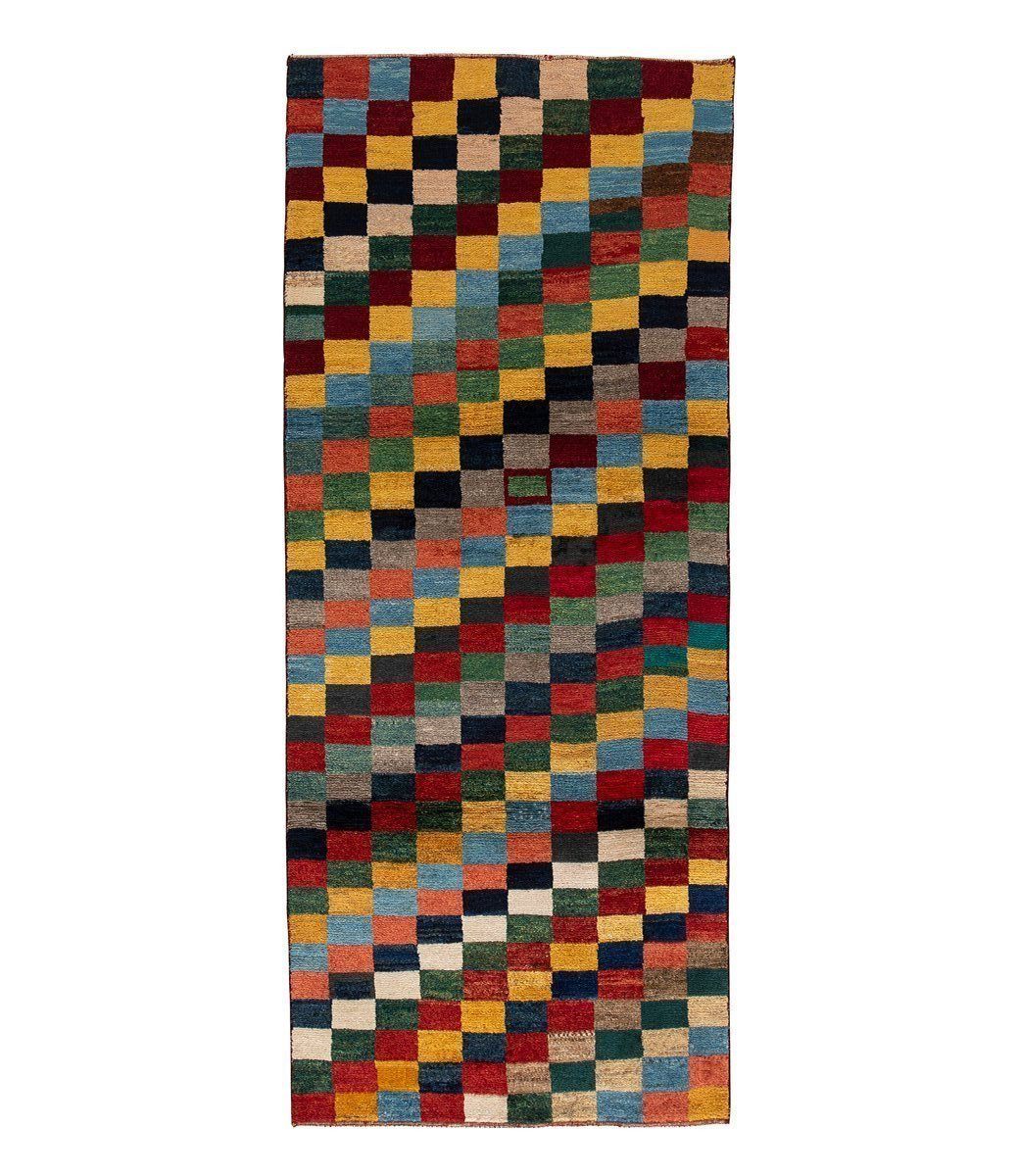 This one of a kind gabbeh was hand knotted using 100% Persian wool and measures 2' 7" x 6' 3".