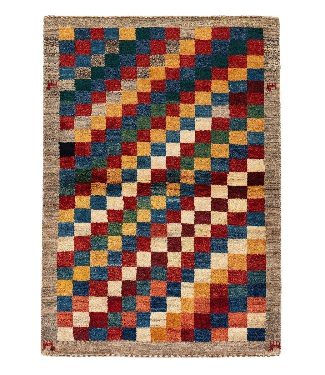 This gabbeh was hand knotted of 100% Persian wool. The multi-color shades were achieved through vegetable dyes, in the traditional style of these carpets. This rug is a one of a kind and is only available as a 3' 6" x 5' 0".