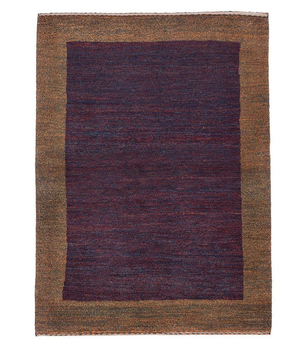 This unique gabbeh featuring a solid border was hand knotted of 100% Persian wool. The color shades were achieved through vegetable dyes, in the traditional style of these carpets. This rug is only available as a 3'9" X 5'1".