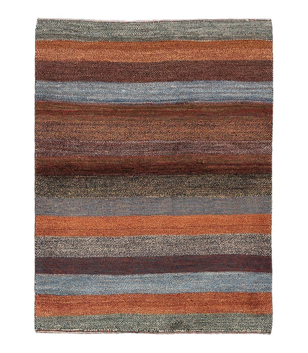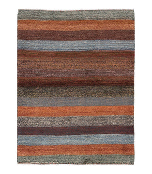 This gabbeh was hand knotted of 100% Persian wool. The multi-color shades were achieved through vegetable dyes, in the traditional style of these carpets. This rug is a one of a kind and only available as a 3'6" X 4'7".