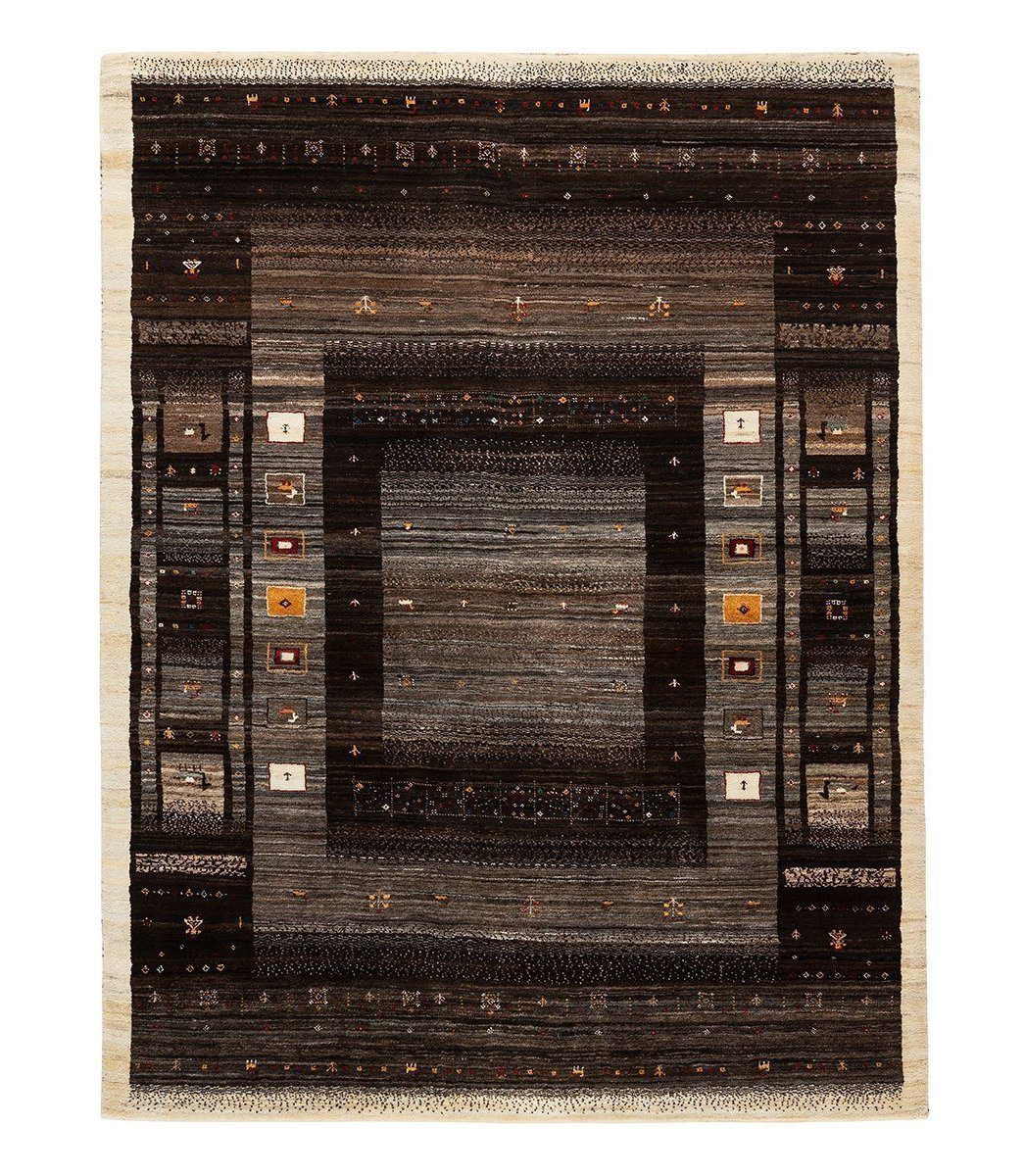 Hand knotted of 100% vegetable-dyed Persian wool, this one-of-a-kind gabbeh measures 5' 0" x 6' 6".