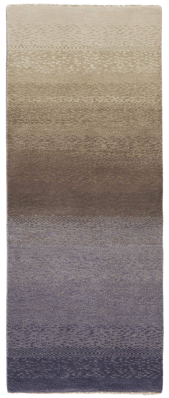 Twilight Amethyst sample is a one of kind color sample, expertly crafted with 100% wool for a soft, luxurious feel underfoot. Its ombre design creates a beautiful combination of colors, including sandy browns and purples. Bring sophisticated style to your space with this opulent rug.