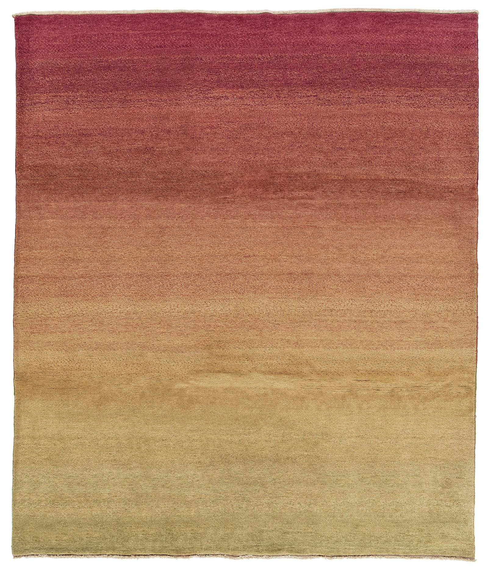 Inspired by the beauty of the ombre color transition initiated by the rising and setting of the sun and moon across the seasons of the year. With no definable pattern or design, this rug has the ability to bring very different colors together in an organic way. Consequently, the rug can safely be introduced into nearly any type of design setting for it is a truly transitional style that will find success in interiors from the very traditional to the super-modern. This one-of-a-kind colorway features a warm golden wheat fading into a deep, rich orange.