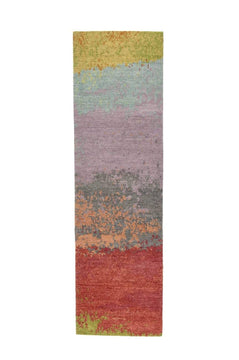 Blend of berry reds, grey, lavendar, pale blue, spring green, lime, and pale orange. This all wool Hompspun weave runner is truly a functional work of art.