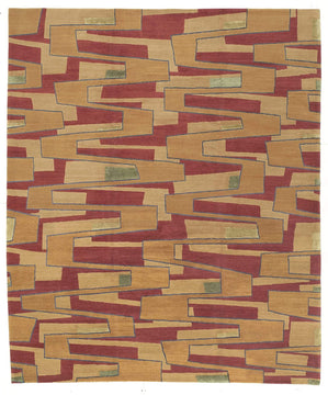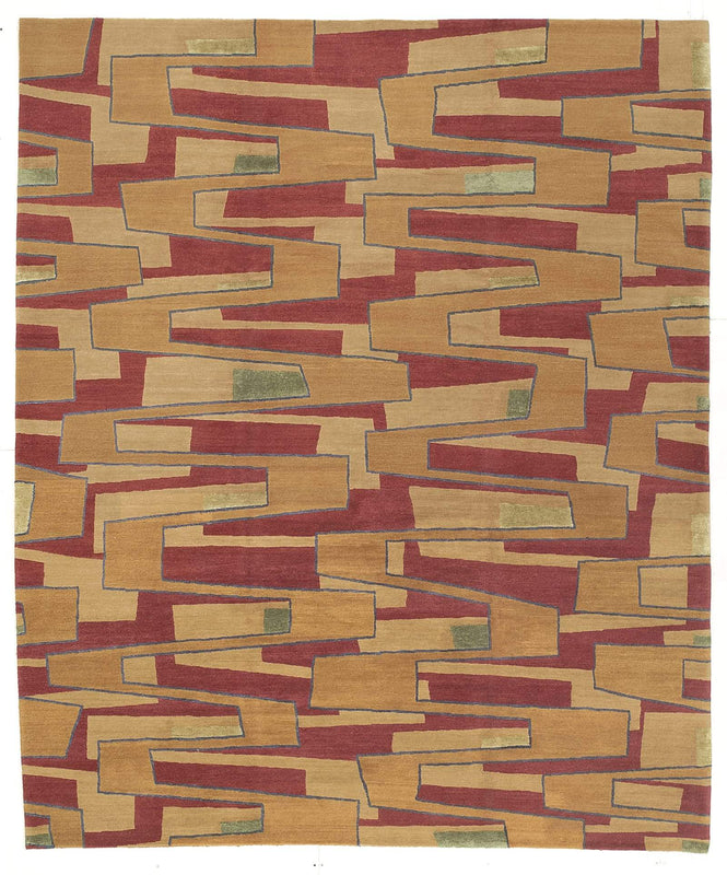 A lively design with movement and rhythm, Zigzaggery by Mark Pollack draws attention to the floors with this work of art. This rug was hand-knotted in Nepal of the finest Tibetan wool and silk using our Shakti weave in a bright red palette. The pile has a smooth, luxurious finish and pile height of about 0.28 inches. Zigzaggery is the perfect contemporary addition for any space.